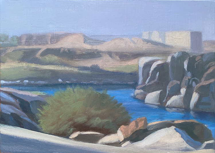 Brushstrokes: Elephantine Island, one of the author’s Nile cruise paintings.
