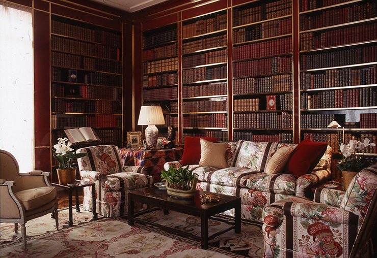Of 14 the rooms in Brooke Astor’s Park Avenue duplex, the library was her favorite, decorated by Parish-Hadley to display her husband’s collection of rare books. Photograph by William P. Steele.