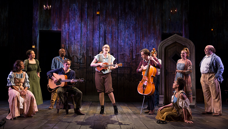 How to animate this curious farrago? How to unlock its theatrical verve? First, the play’s two directors, Noah Brody and Emily Young, no doubt working closely with the actors, have unobtrusively streamlined and modernized the text. Second, while much of the staging clearly derives from group improvisation, they have given the evening a clear and comprehensible shape. Everything flies by briskly; nothing drags or dallies. There’s no chance for us to ask if it actually makes sense.